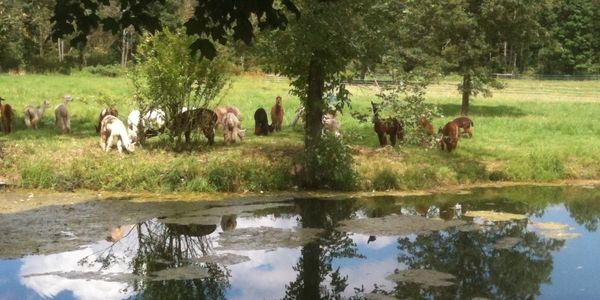 Our farm features a wonderful old bank barn that we have adapted to accommodate our herd. We have lovely open pastures, spectacular old trees and a scenic pond.